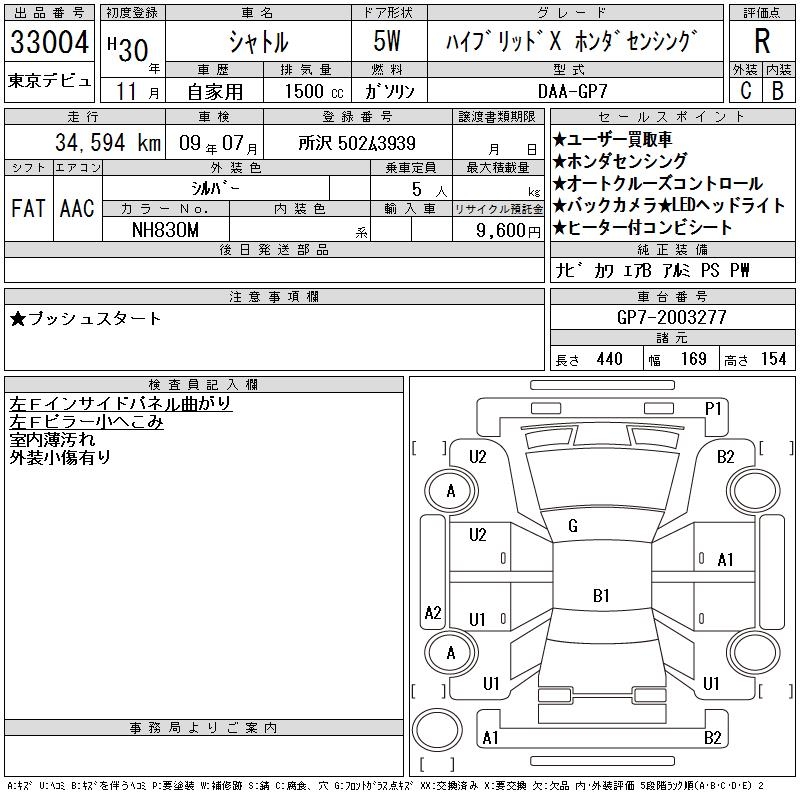 HONDA SHUTTLE HYBRID X HONDA SENSING - лот 33004