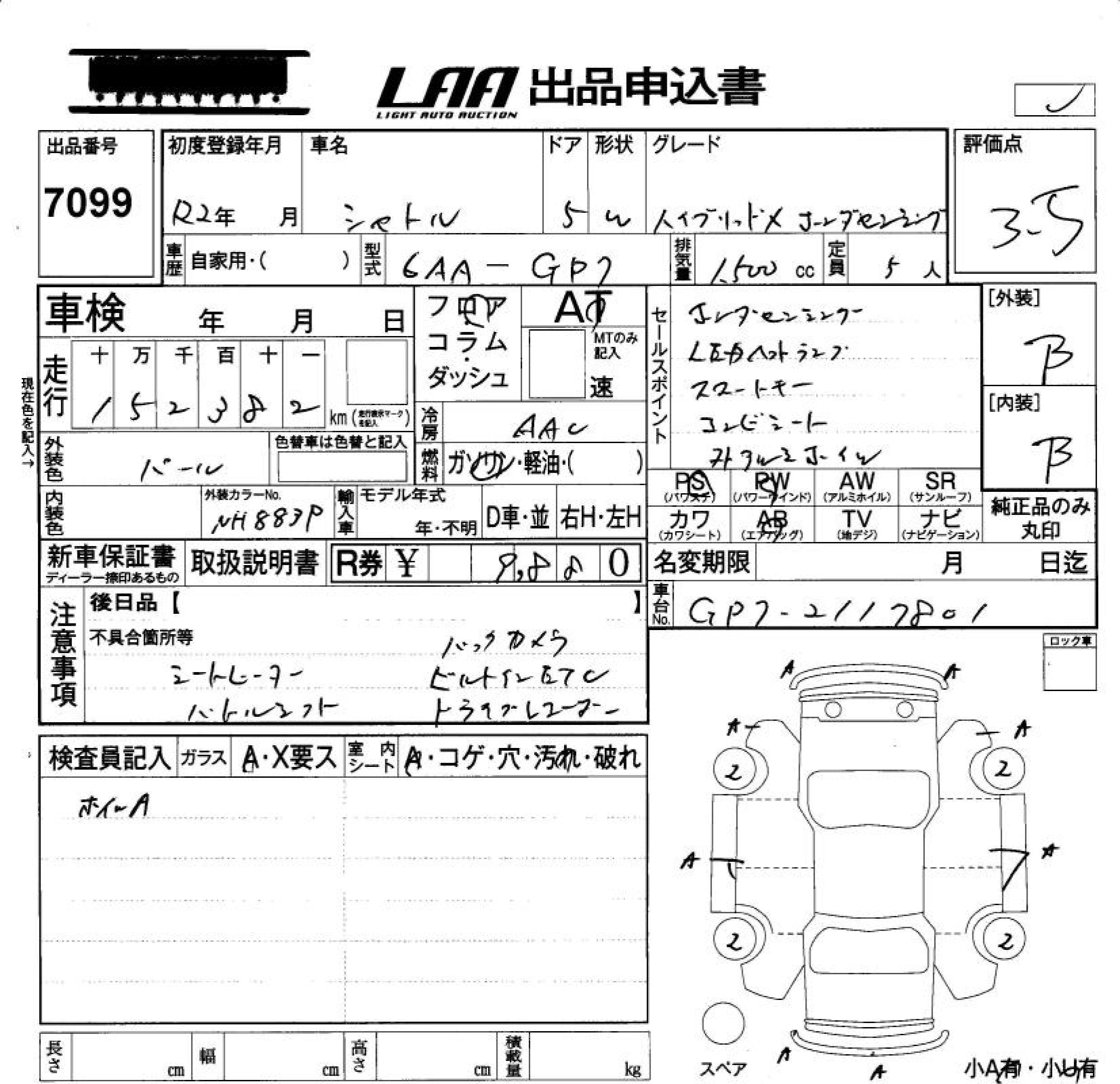 HONDA SHUTTLE HYBRID X HONDA SENSIN - лот 7099