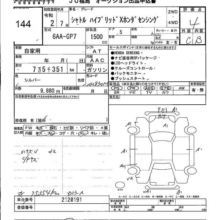 HONDA SHUTTLE HYBRID X HONDA SENSING - лот 144