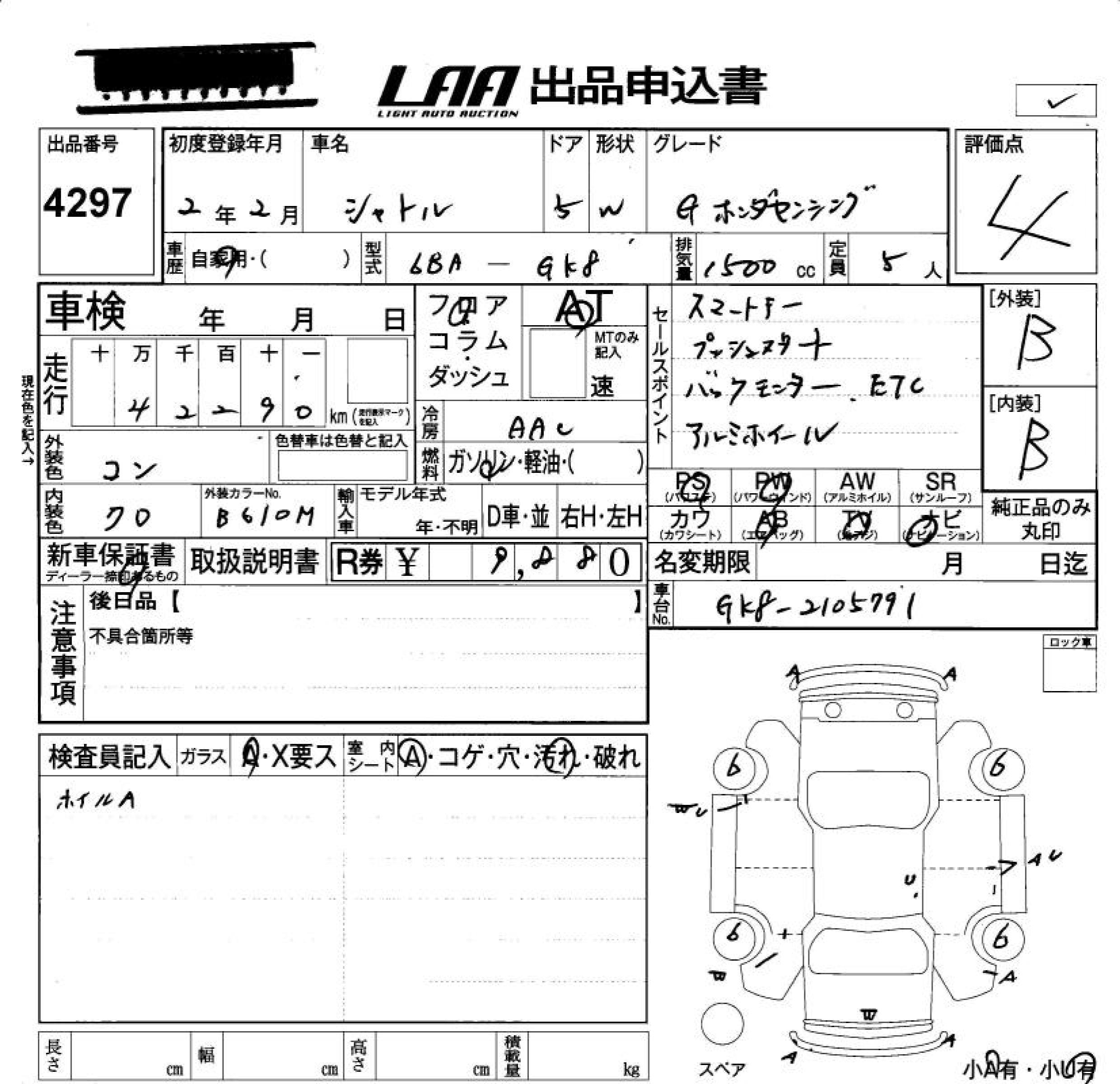 HONDA SHUTTLE G HONDA SENSING - лот 4297