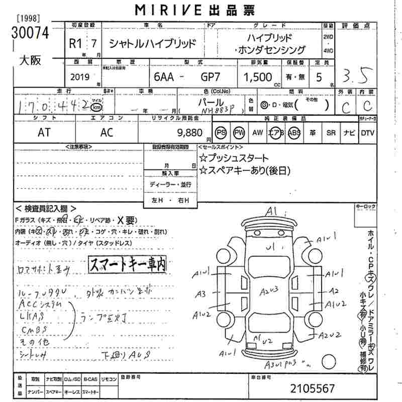 HONDA SHUTTLE HYBRID * HONDA SENSING - лот 30074