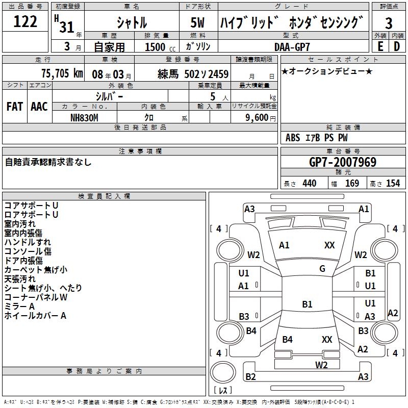 HONDA SHUTTLE HYBRID HONDA SENSING - лот 122