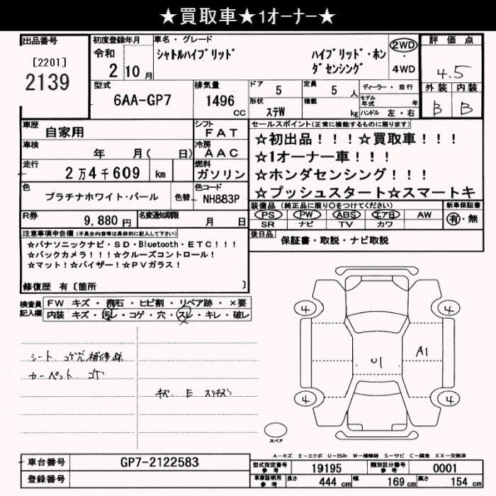 HONDA SHUTTLE HYBRID HONDA SENSING - лот 2139
