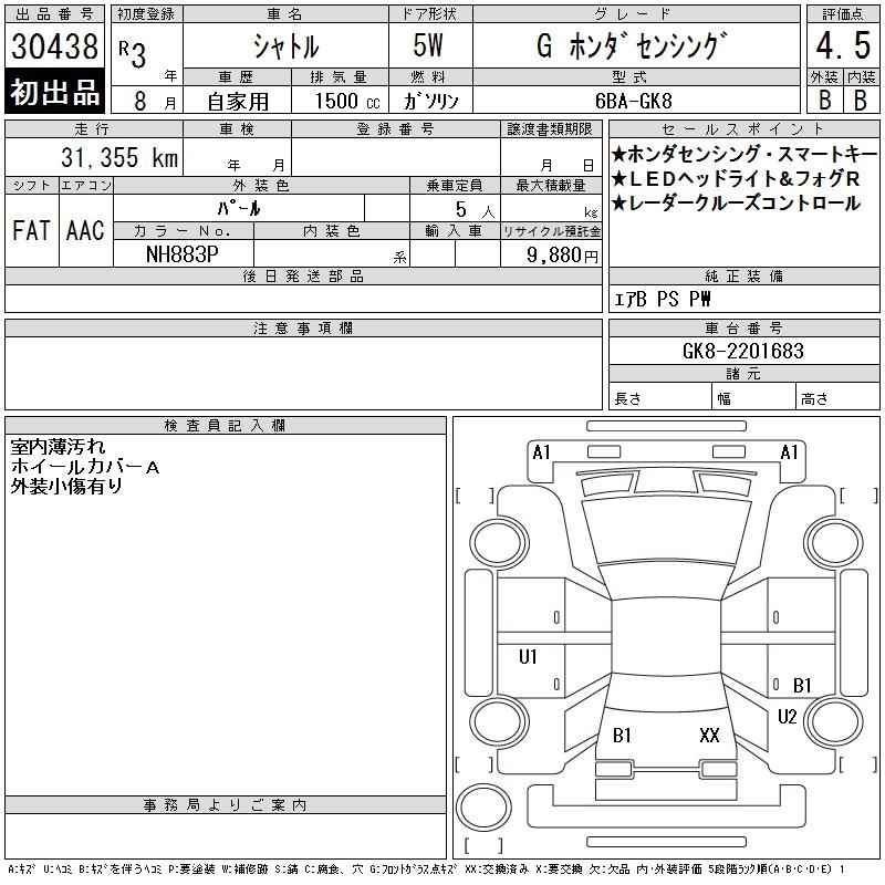HONDA SHUTTLE G HONDA SENSING - лот 30438