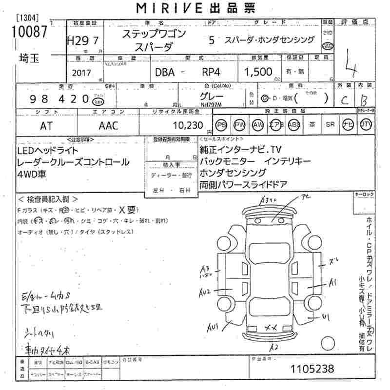 HONDA STEPWGN SPADA SPADA * HONDA SENSING - лот 10087