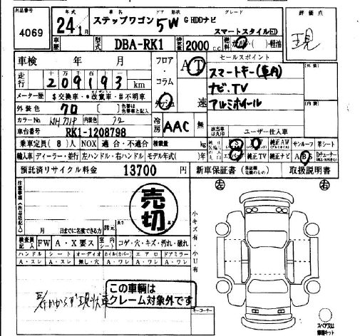 HONDA STEPWGN G HDD NAVIGATION SMART S MANY - лот 4069