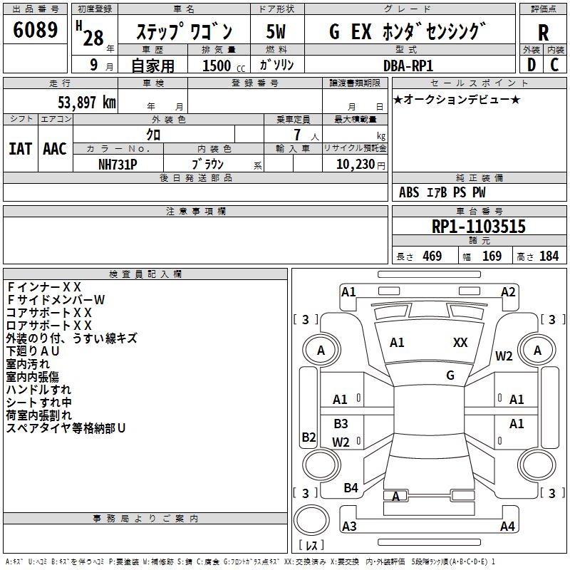 HONDA STEPWGN G EX HONDA SENSING - лот 6089