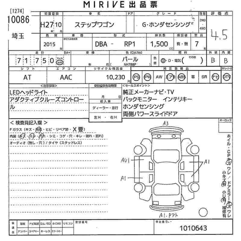 HONDA STEPWGN G* HONDA SENSING - лот 10086