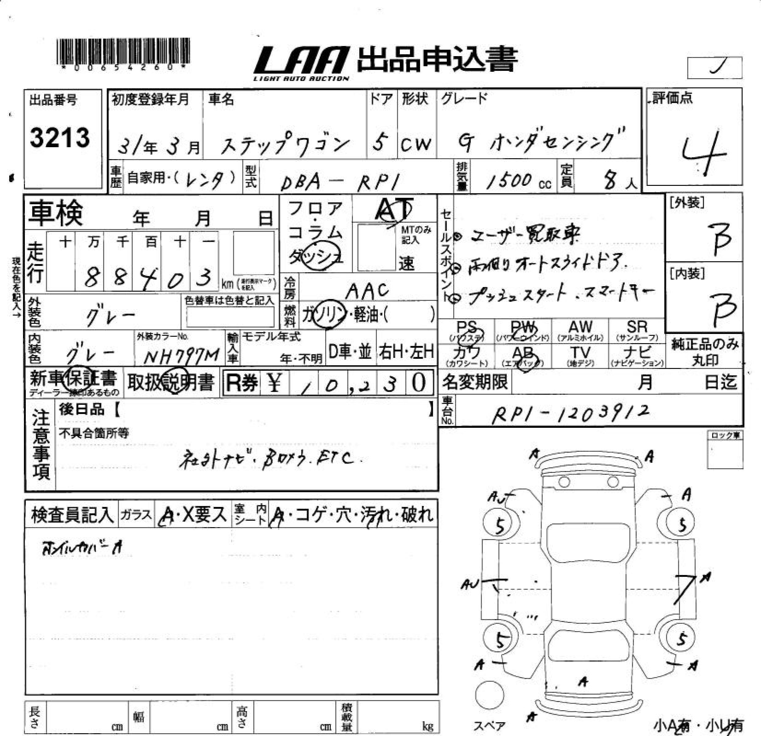 HONDA STEPWGN G HONDA SENSING - лот 3213