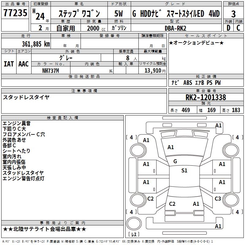 HONDA STEPWGN G HDD NAVIGATION SMART S MANY I4WD - лот 77235