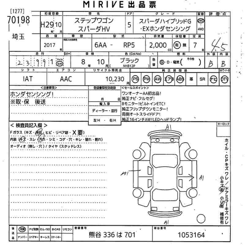 HONDA STEPWGN SPADA HYBRID G*EX HONDA SENSING - лот 70198