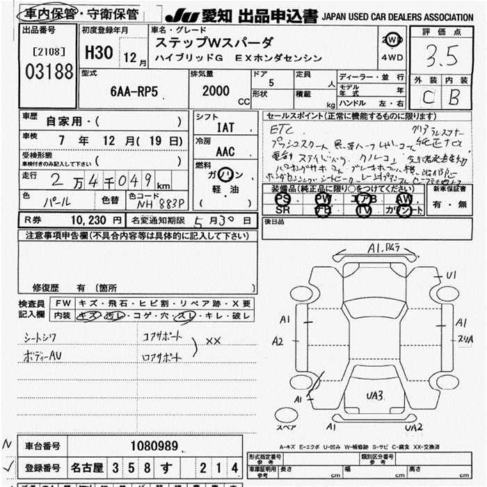 HONDA STEPWGN HYBRID G EX HONDA SENSIN - лот 3188