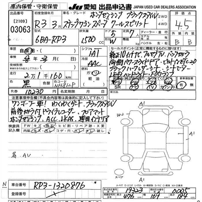 HONDA STEPWGN C SPIRIT HSENSINGBKS MANY - лот 3063