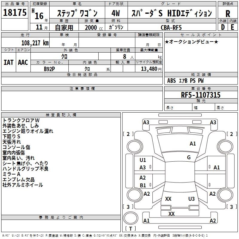 HONDA STEPWGN SPADA S HID EDITION - лот 18175