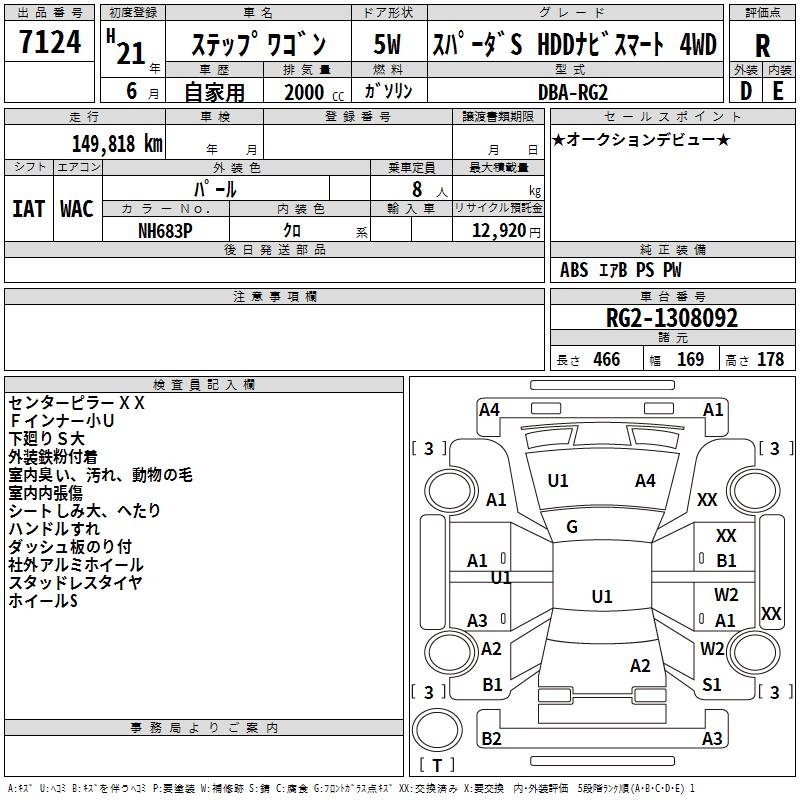 HONDA STEPWGN SPADA S HDD NAVIGATION SMA4WD - лот 7124