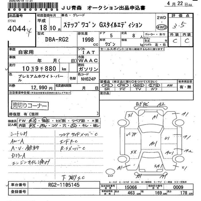 Все аукционы HONDA STEPWGN