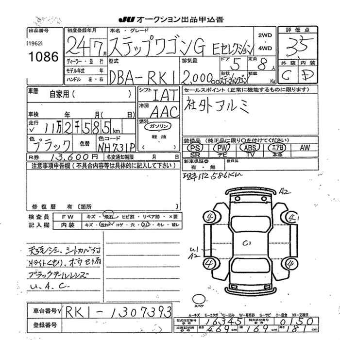 HONDA STEPWGN G E SELECTION - лот 1086