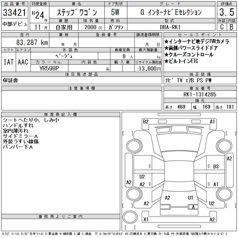 HONDA STEPWGN G INTER NAVIGATION E SELECTION - лот 33421