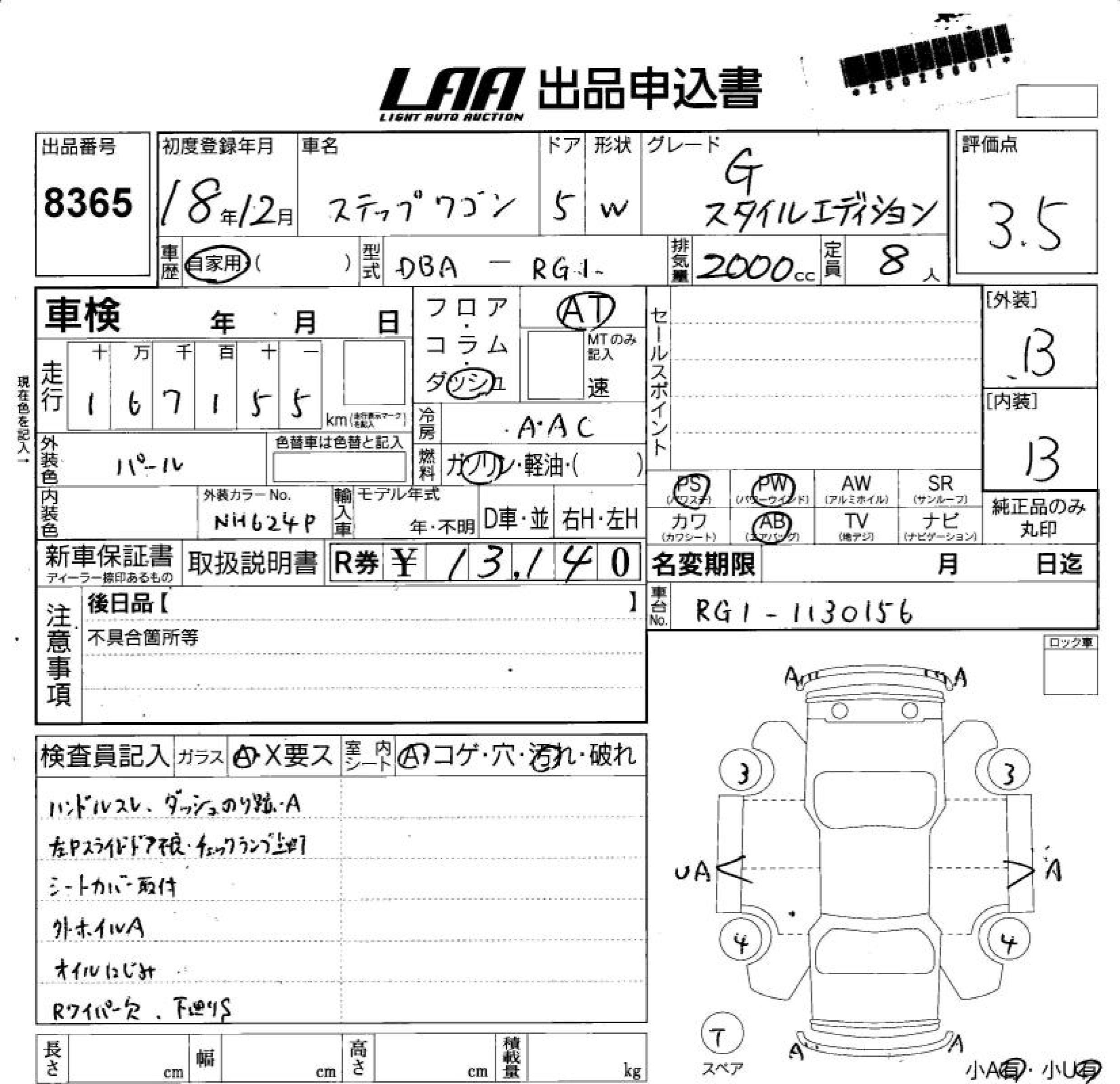 HONDA STEPWGN G STYLE EDITION - лот 8365