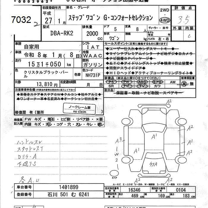 HONDA STEPWGN 4WD G COMFORT SELECTION - лот 7032