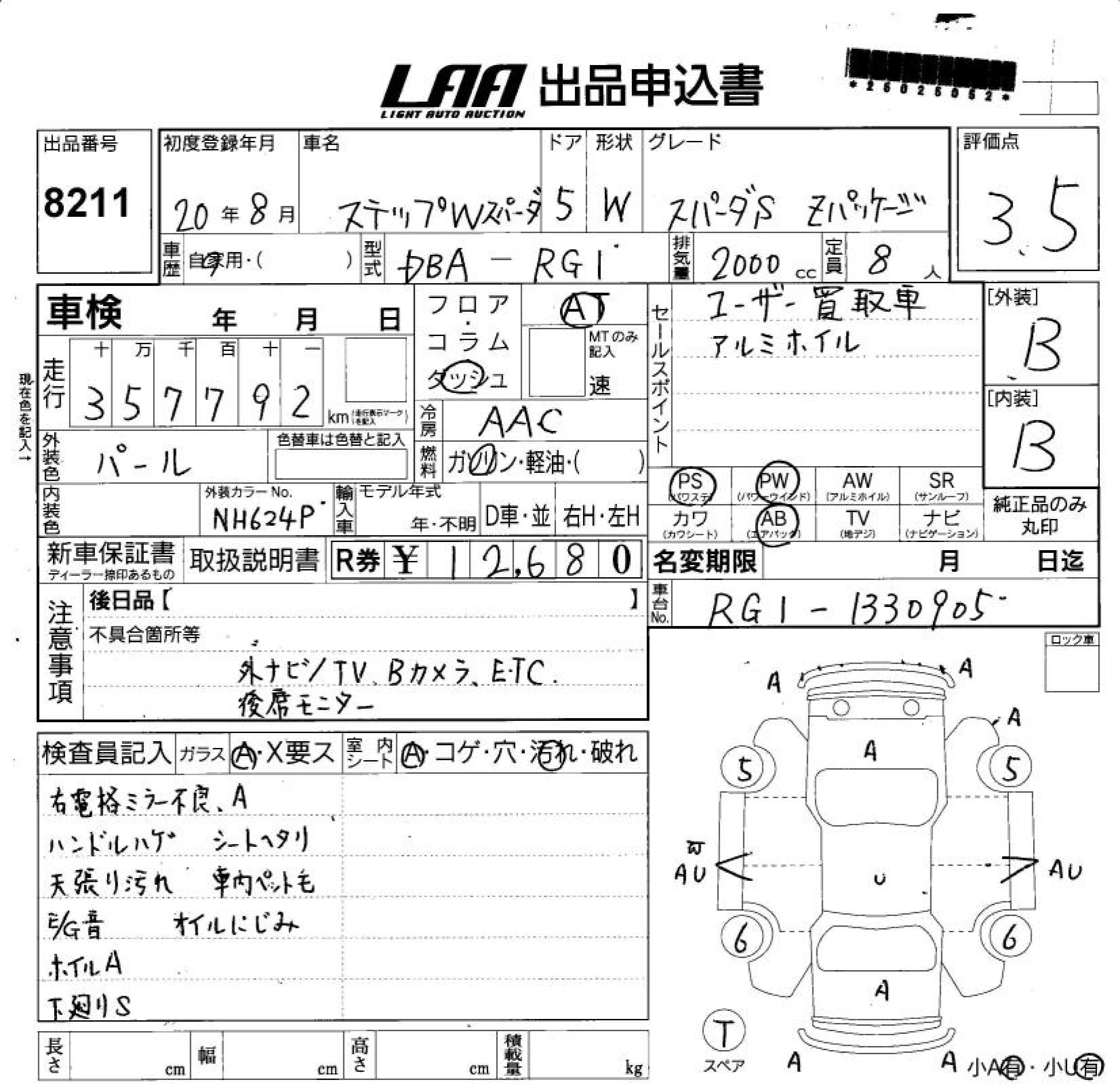 HONDA STEPWGN SPADA S Z PACKAGE - лот 8211