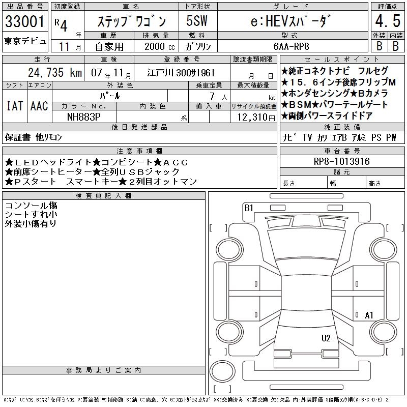 HONDA STEPWGN E:HEV SPADA - лот 33001