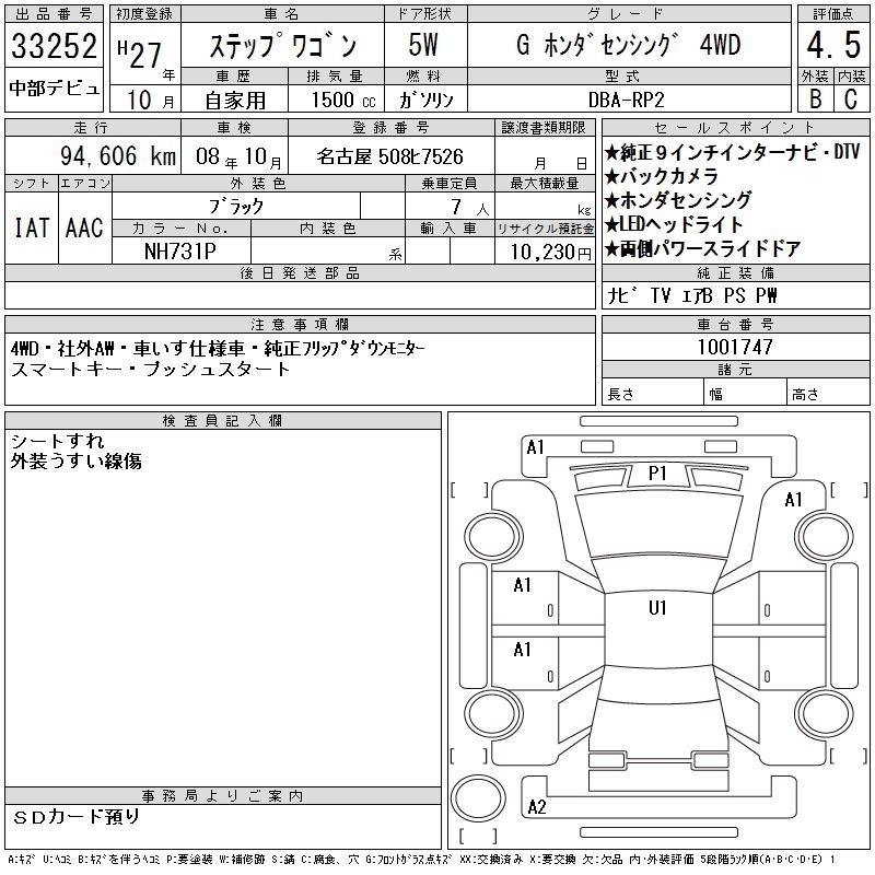 HONDA STEPWGN G HONDA SENSING4WD - лот 33252
