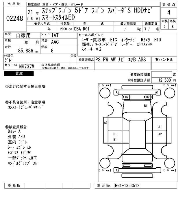 HONDA STEPWGN SPADA S HDD NAVIGATION SMART STYLE ED - лот 2248