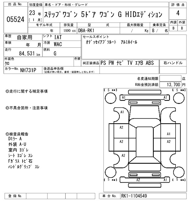 HONDA STEPWGN G HID EDITION - лот 5524