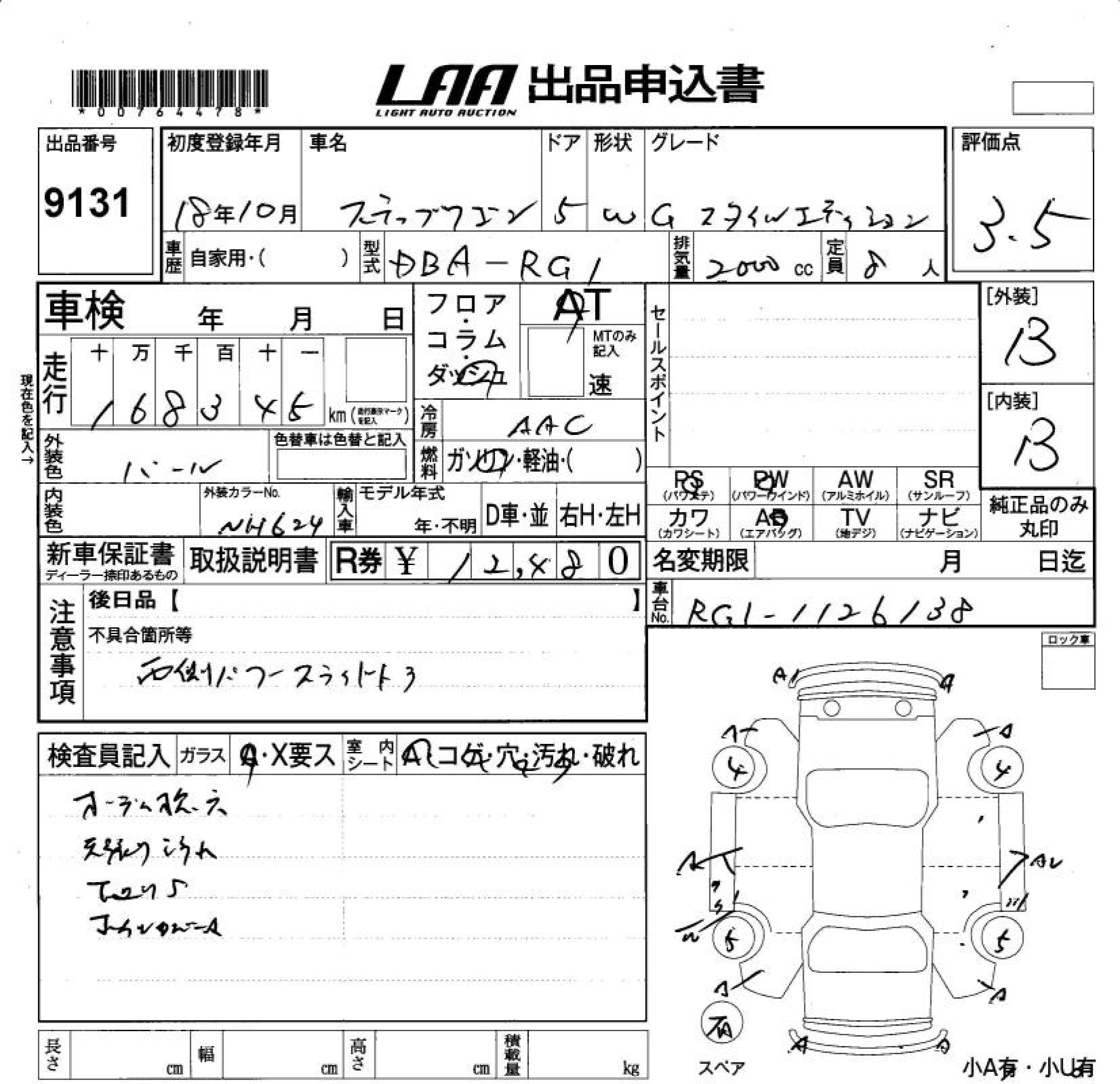 HONDA STEPWGN G STYLE EDITION - лот 9131