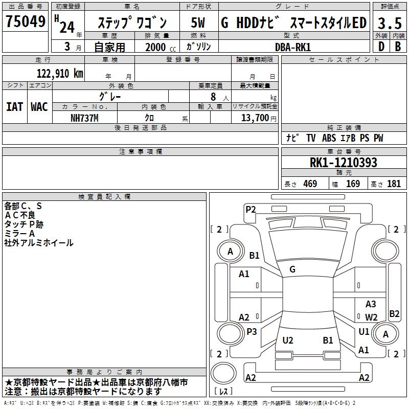 HONDA STEPWGN G HDD NAVIGATION SMART STYLE ED - лот 75049