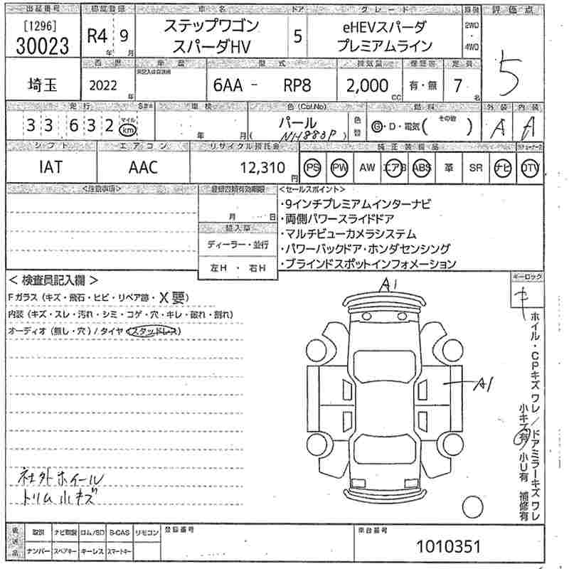 HONDA STEPWGN EHEV SPADA PREMIUM LINE - лот 30023