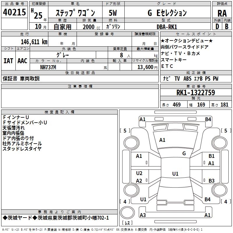 HONDA STEPWGN G E SELECTION - лот 40215