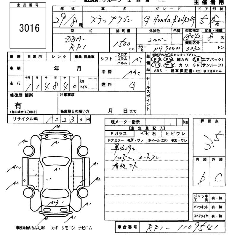 Все аукционы HONDA STEPWGN