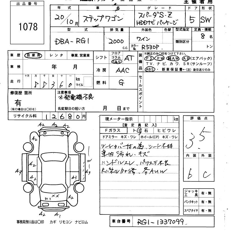 HONDA STEPWGN SPADA S Z HDD NAVIGATION PACK - лот 1078