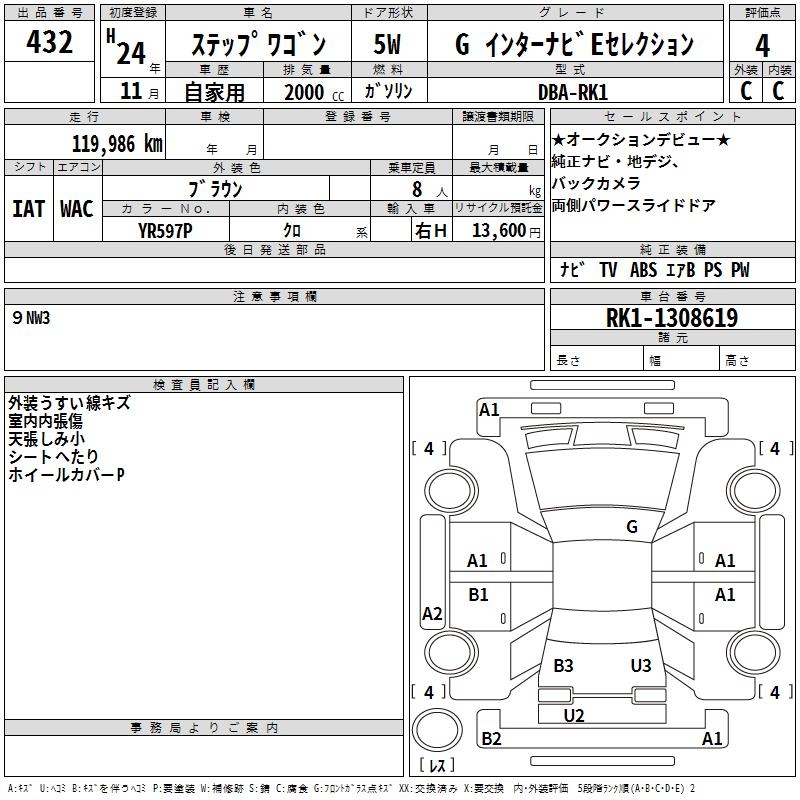 HONDA STEPWGN G INTER NAVIGATION E SELECTION - лот 432
