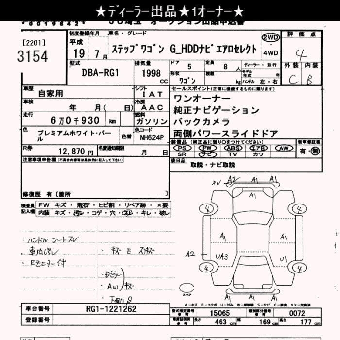 HONDA STEPWGN G HDD NAVIGATION AERO SELECT - лот 3154
