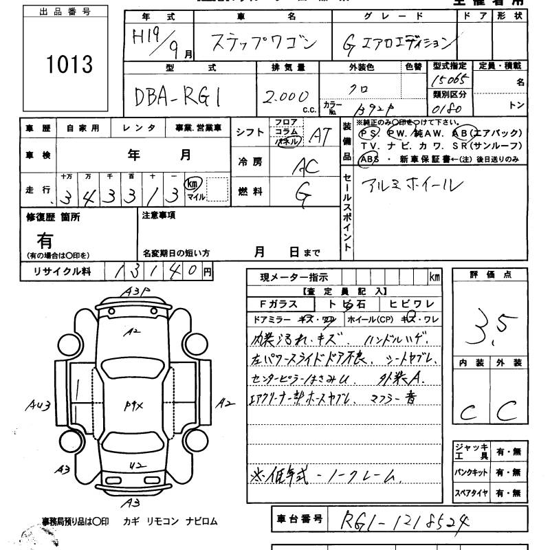 HONDA STEPWGN G AERO EDITION - лот 1013