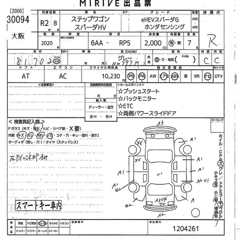 HONDA STEPWGN EHEV SPADA G* HONDA SENSING - лот 30094