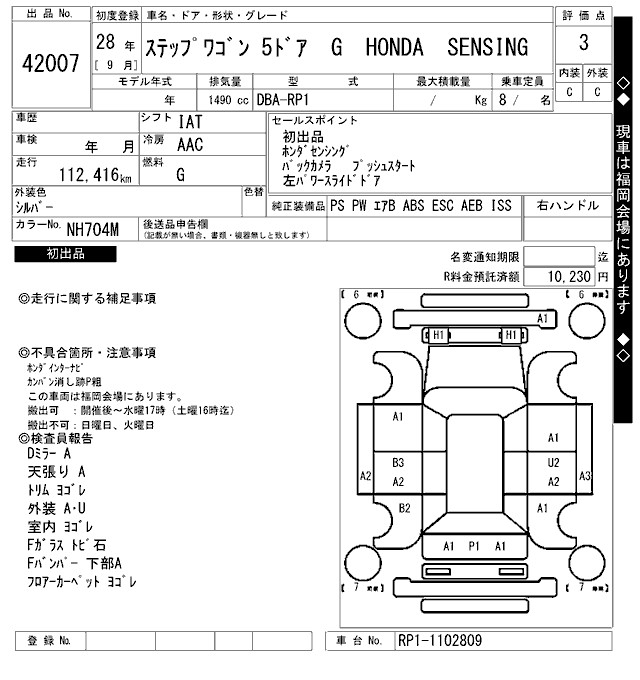 HONDA STEPWGN G HONDA SENSING - лот 42007