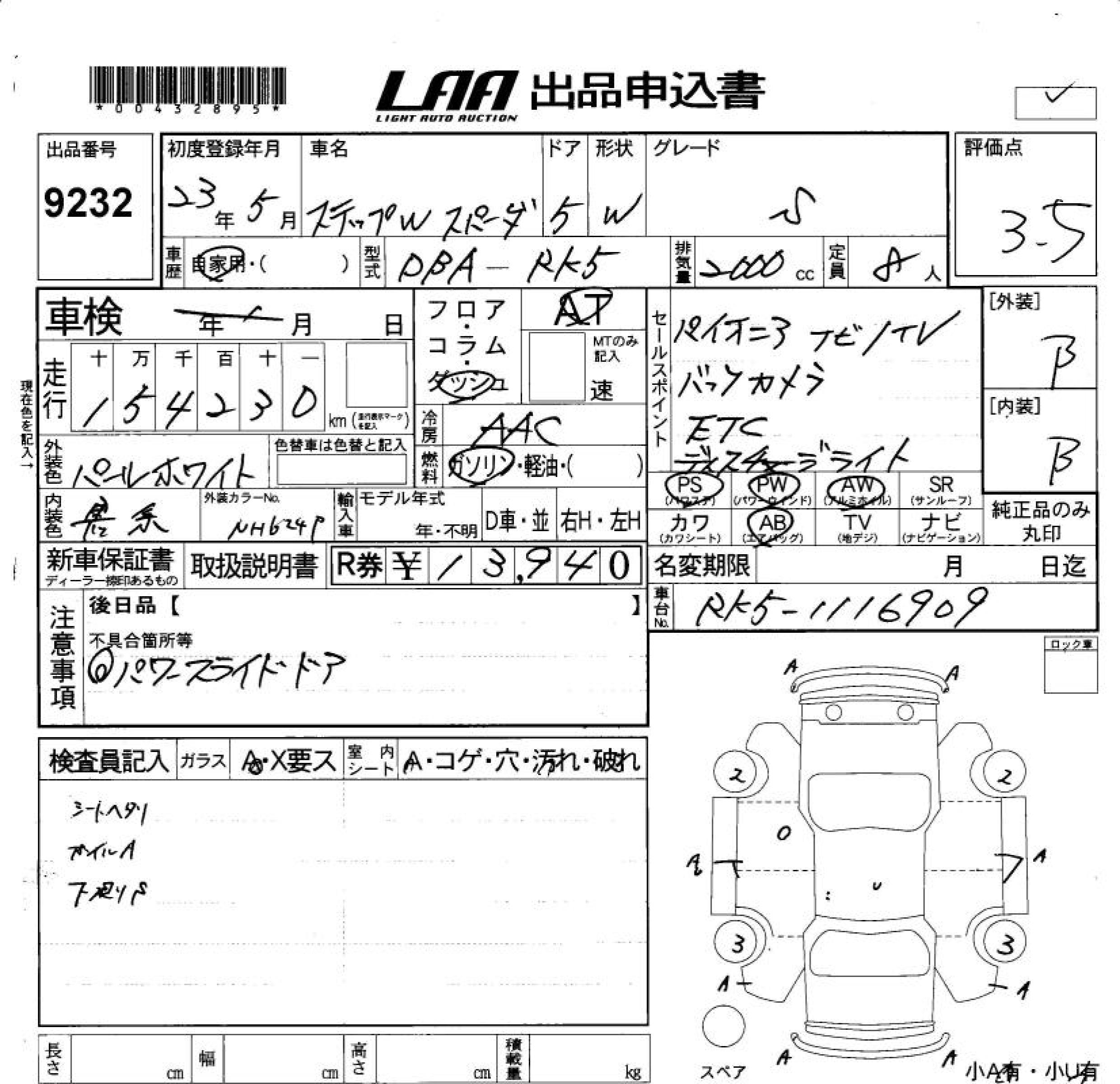 HONDA STEPWGN SPADA - лот 9232