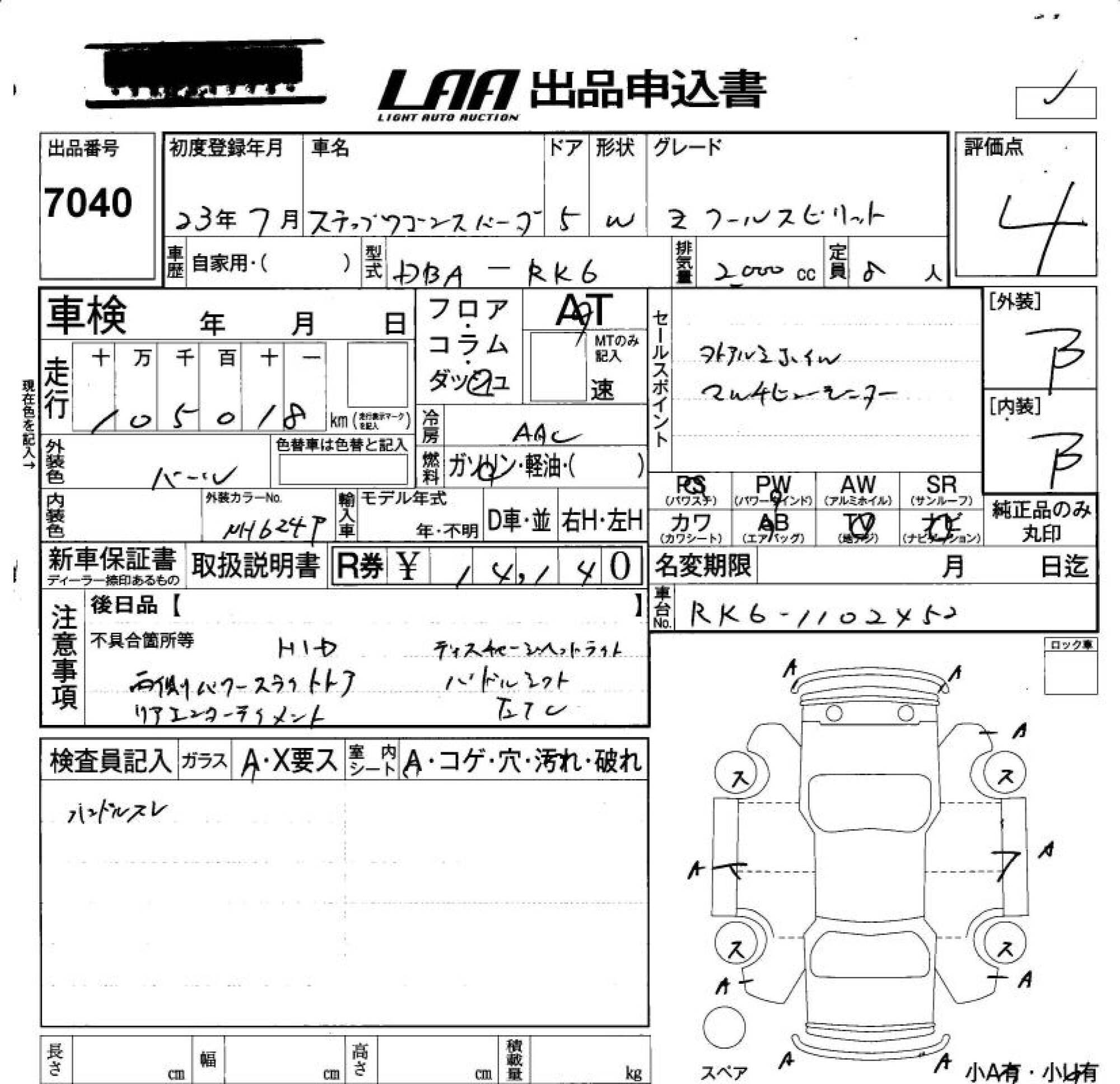 HONDA STEPWGN SPADA - лот 7040