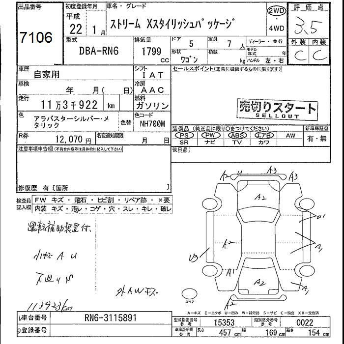 HONDA STREAM - лот 7106