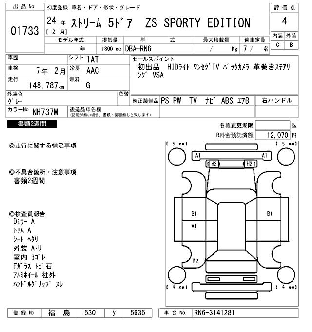 HONDA STREAM - лот 1733