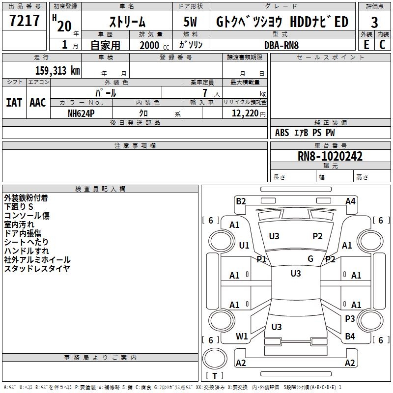 HONDA STREAM G SPECIAL USE HDD NAVIGATION ED - лот 7217