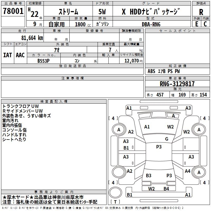 HONDA STREAM X HDD NAVIGATION PACKAGE - лот 78001