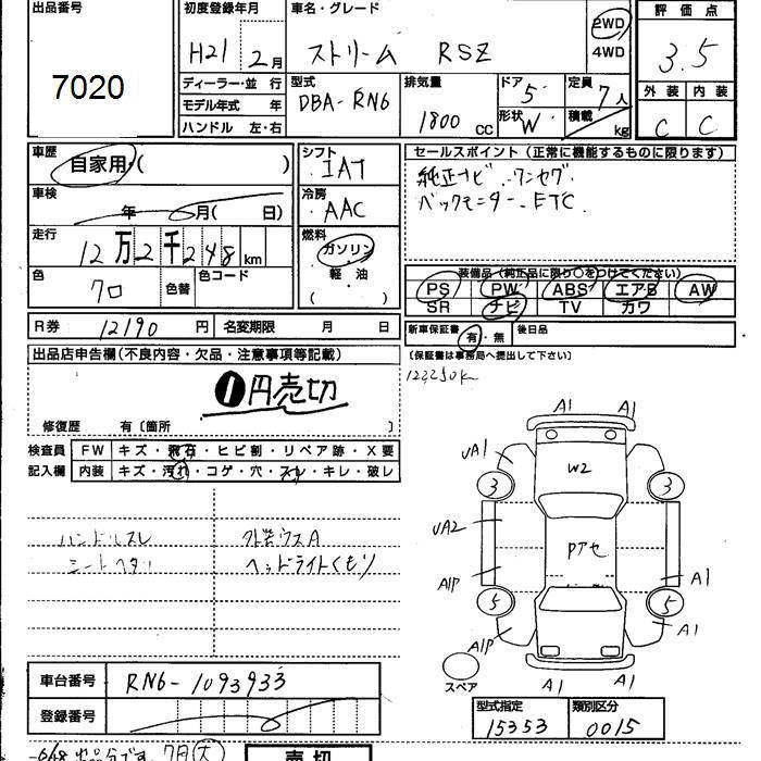 HONDA STREAM RSZ - лот 7020