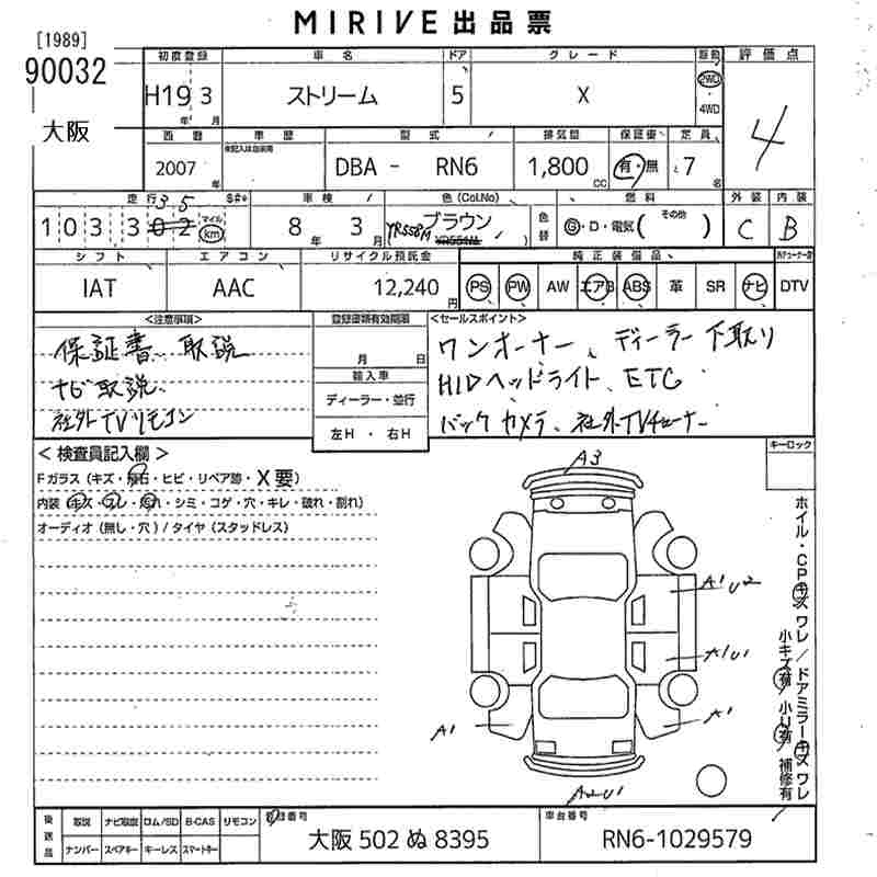 HONDA STREAM X - лот 90032
