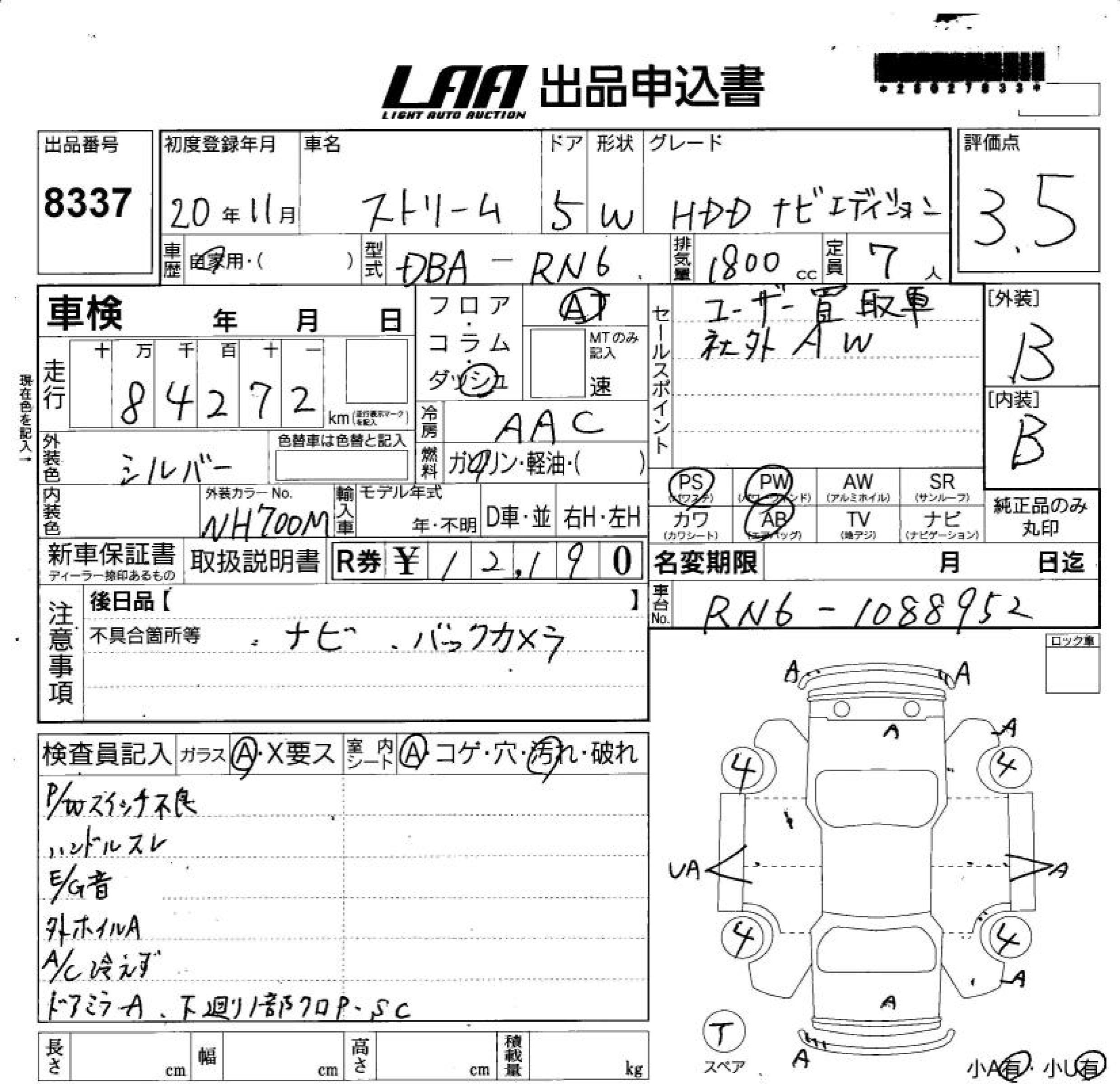 HONDA STREAM HDD NAVI EDITION - лот 8337