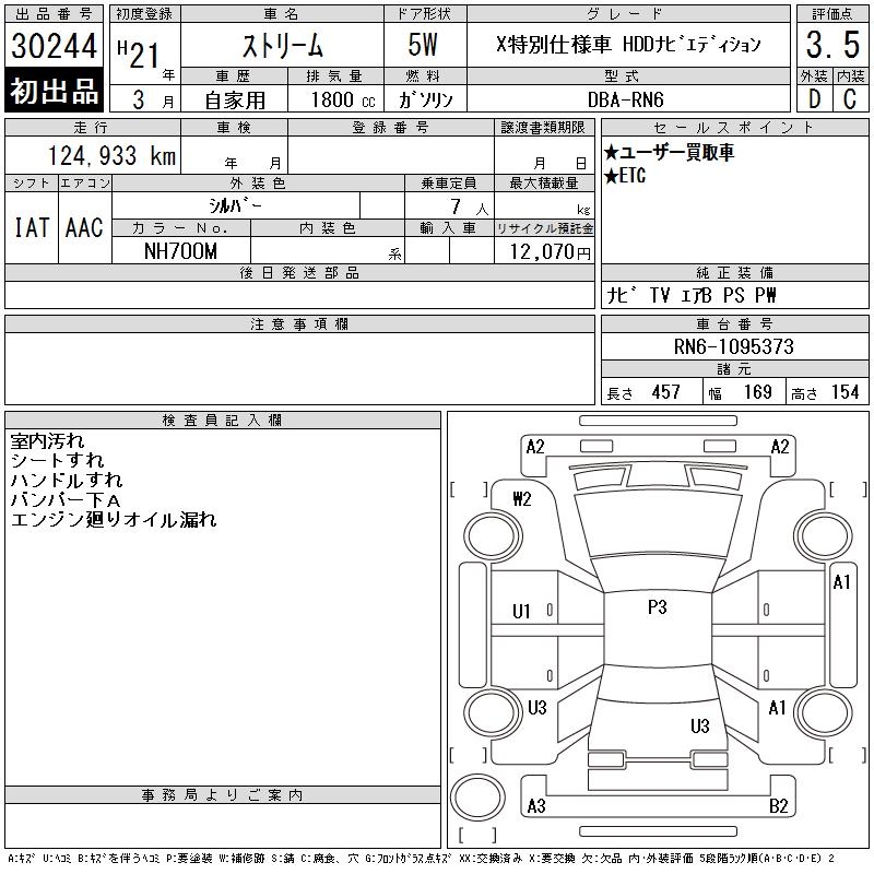 HONDA STREAM X SPECIAL USE HDD NAVIGATION ED - лот 30244